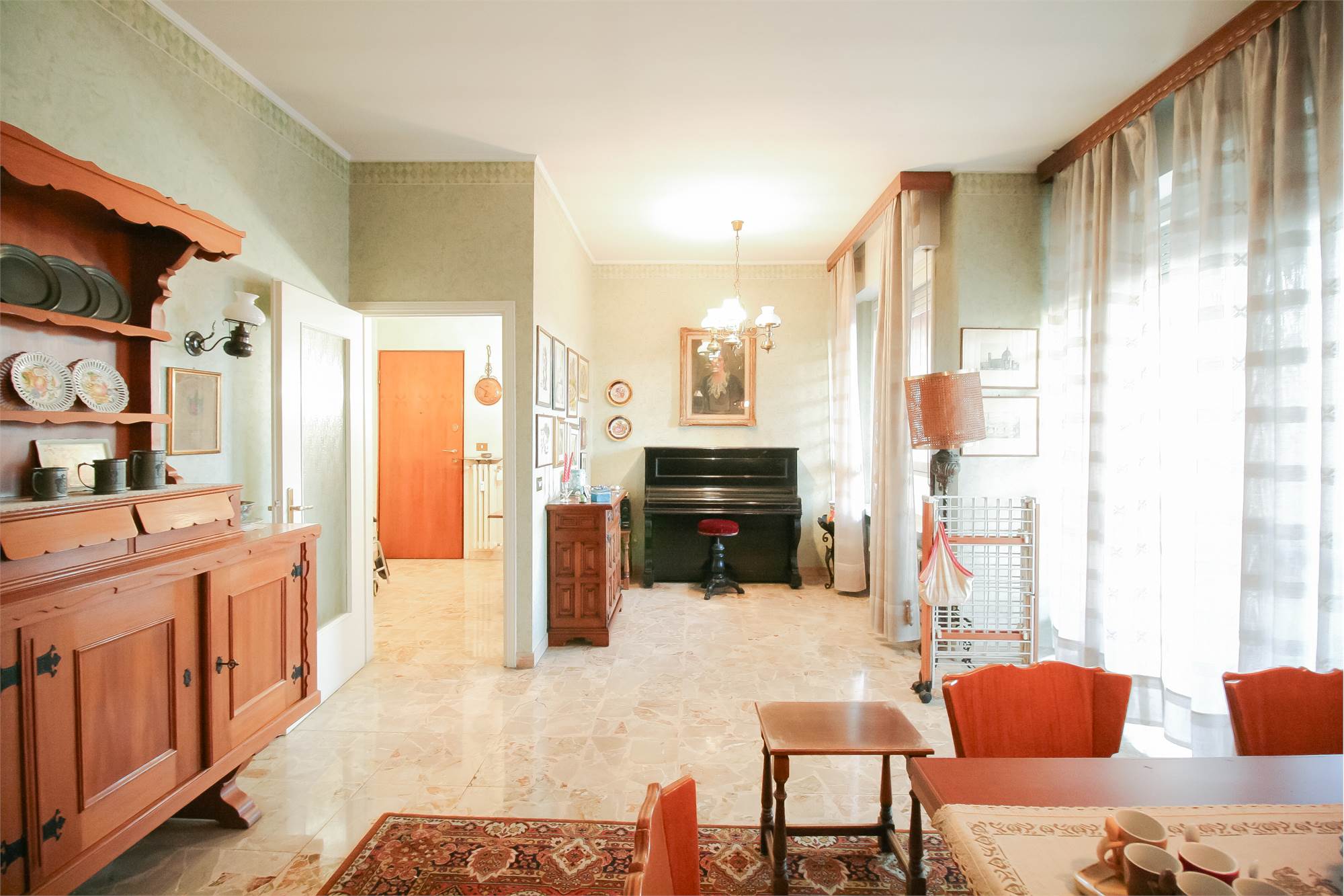 L’immobile offre spazi ampi e ben distribuiti: l’ingresso si apre su un accogliente soggiorno, affiancato da un secondo soggiorno con accesso al terrazzo, perfetto per momenti di relax all’aperto.